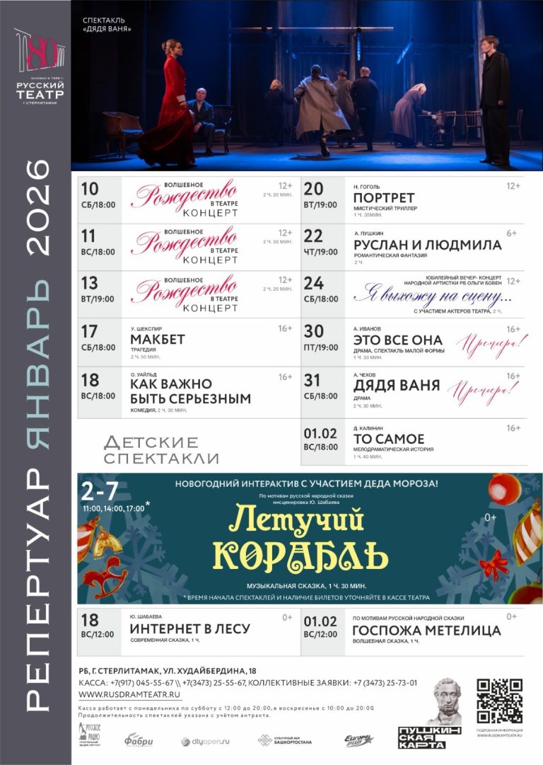 Встречайте афишу января Русского драматического театра г.Стерлитамак!