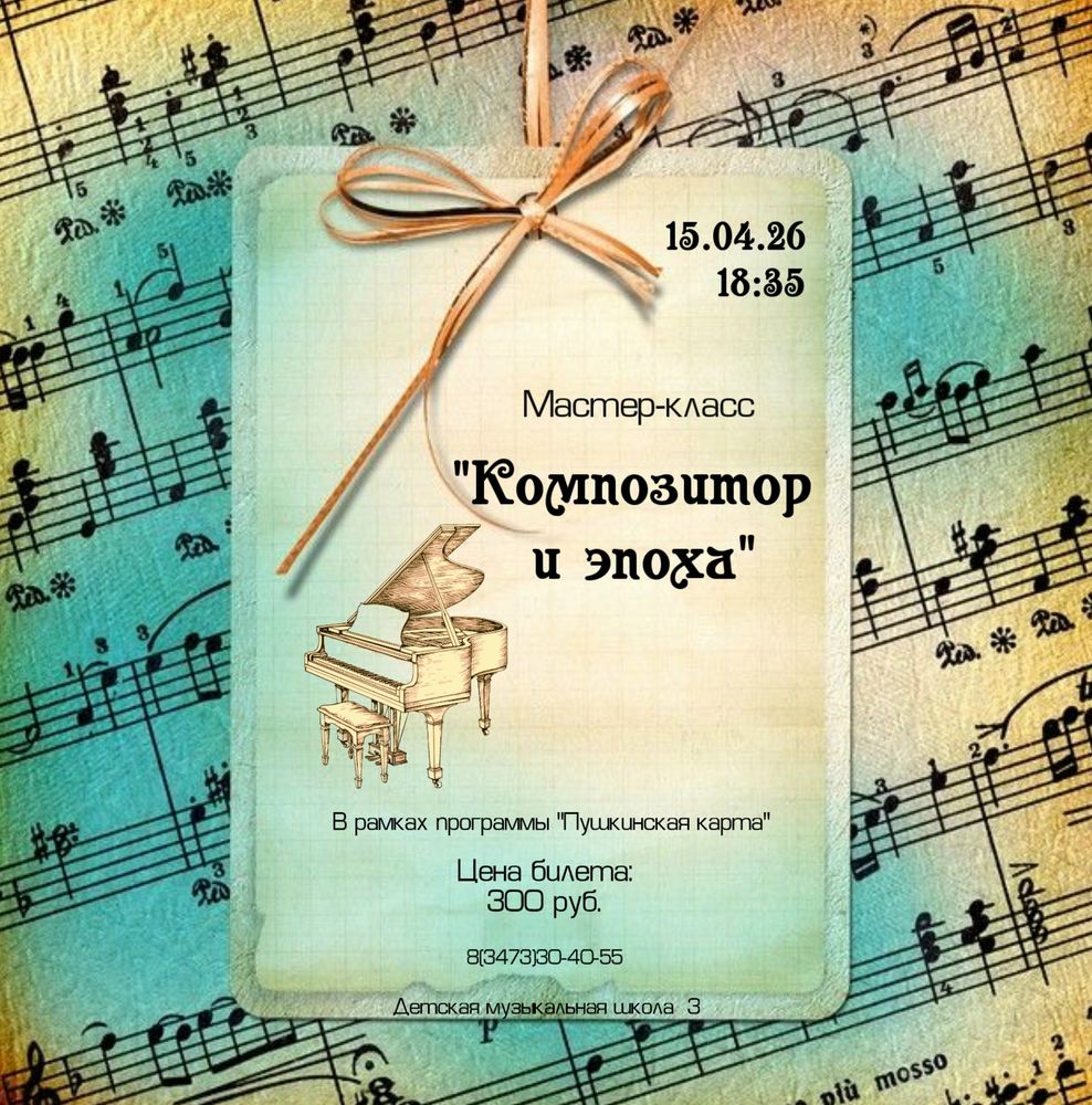 15 апреля в 18:35 в Детской музыкальной школе №3 состоится мастер-класс «Композитор и эпоха»