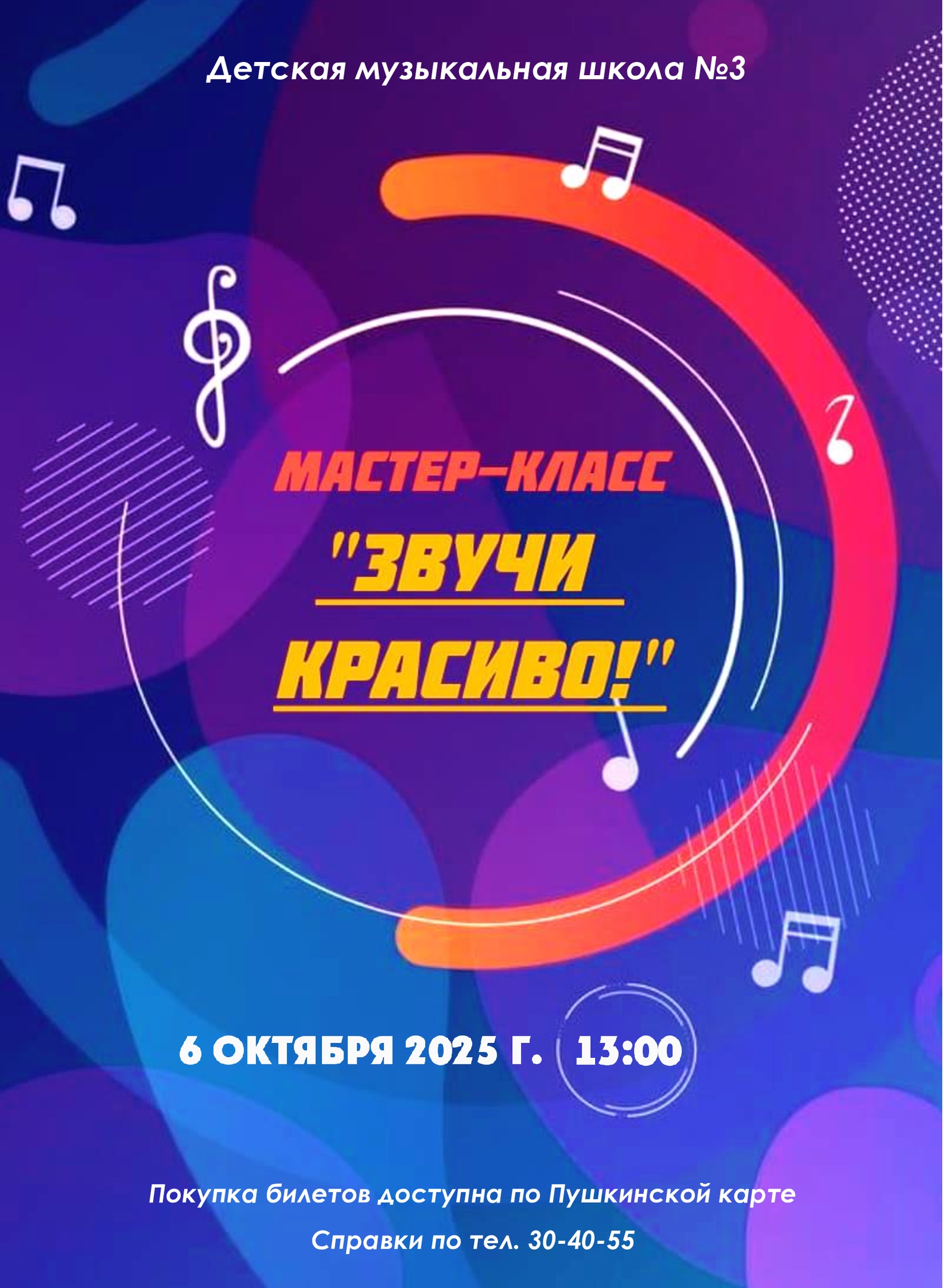 6 октября в 13.00ч. в Детской музыкальной школе №3 состоится мастер-класс по вокалу.