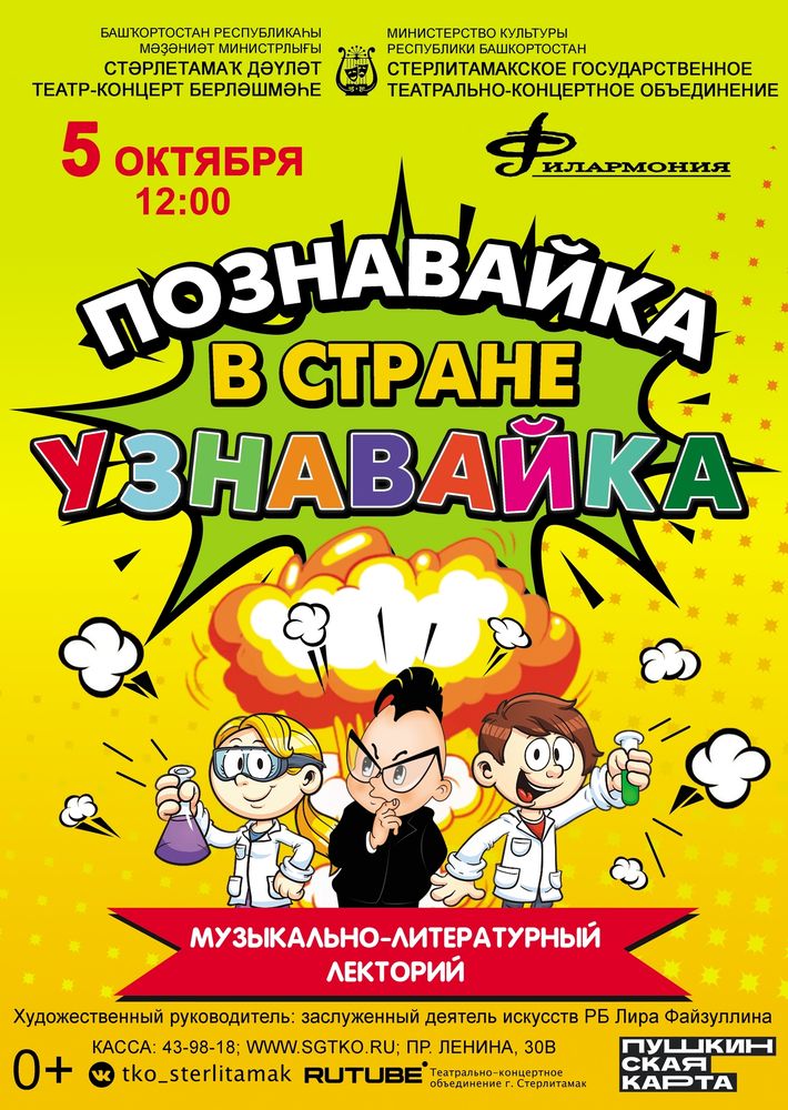 Дорогие друзья, в это воскресенье 5 октября в 12.00 ждем вас на ярком, увлекательном и занимательном музыкально-интерактивном представлении для детей «ПОЗНАВАЙКА В СТРАНЕ УЗНАВАЙКА»!
