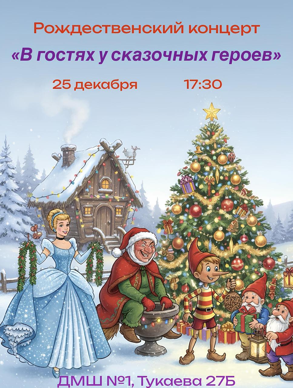 25 декабря в 17.30ч. в самый сказочный вечер, Детская музыкальная школа №1 (ул.Тукаева 27б.) распахнёт свои двери для самого душевного Рождественского концерта — «В гостях у сказочных героев».