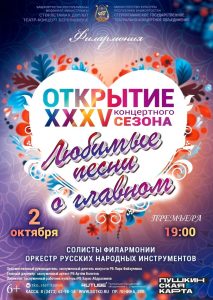 2 октября оркестр русских народных инструментов под управлением заслуженного артиста РБ Артема Болотова подарит незабываемый вечер под названием «Любимые песни о главном», исполнив любимые мелодии современности.