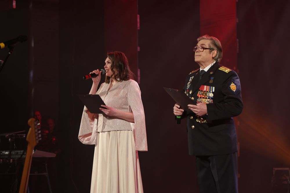Три дня на сцене городского Дворца культуры проходили праздничные мероприятия — это торжественное собрание с участием администрации муниципалитета, всероссийский фестиваль военно-патриотической песни «О Родине! О доблести! О чести!» и концерт для горожан.