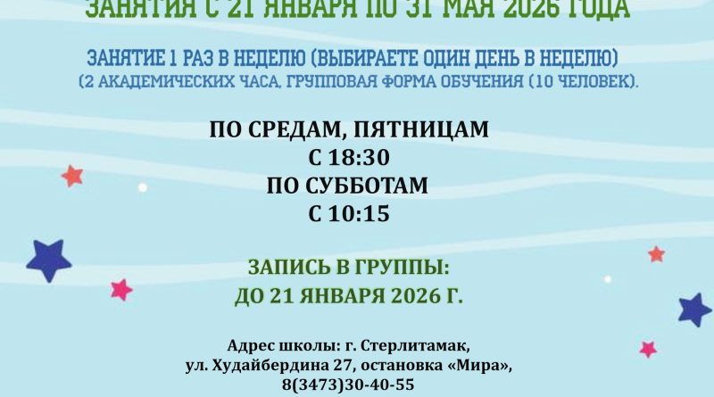 Адрес школы: 453124, РБ, г. Стерлитамак, ул. Худайбердина, д. 27. Справки по телефону 8(3473) 30-40-55.
