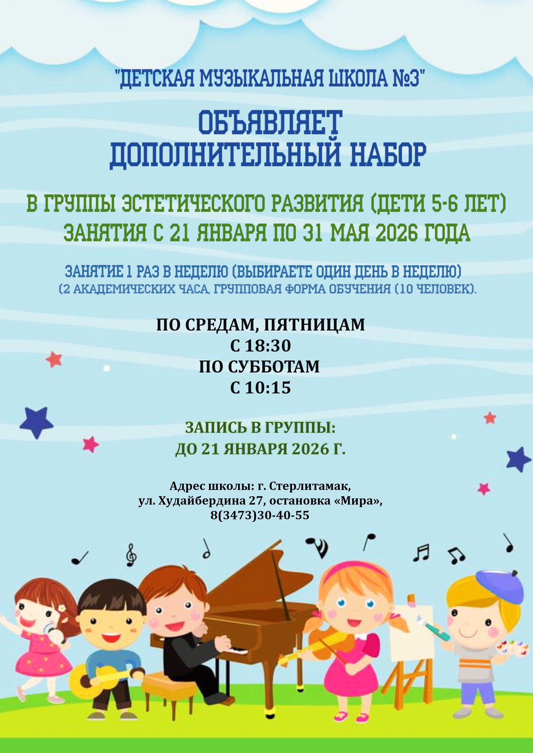 По информации Детская музыкальная школа №3 г.Стерлитамак